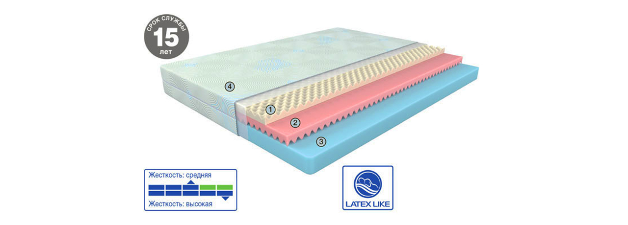 High-density foam at the base of the mattress ensures the correct position of the spine in any sleeping position.